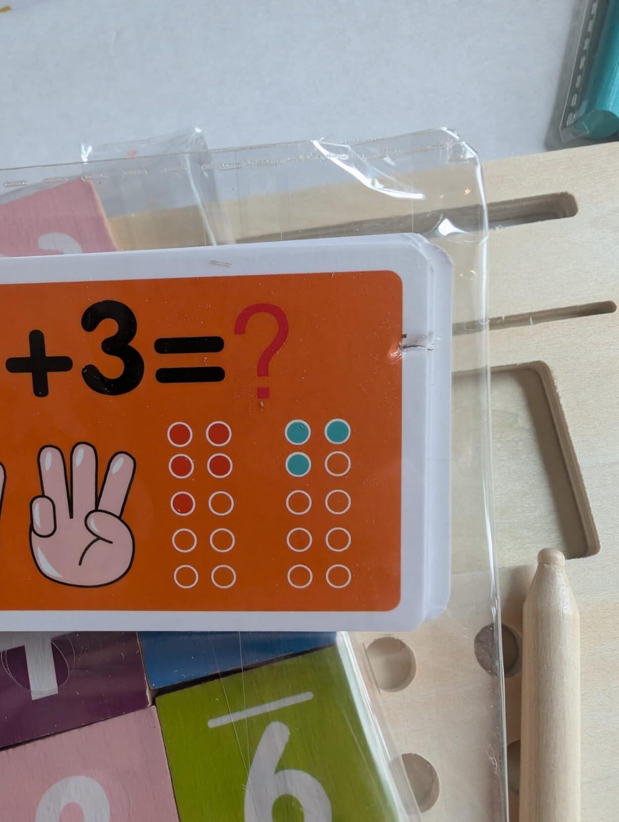 À cela s’ajoute un coffret complet : un plateau en bois robuste, des cartes progressives, des chiffres colorés et des bâtonnets faciles à manipuler.